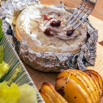 Préchauffer le four à 180°c si vous ne le faites pas au barbecue, sinon allumer vos sarments, rabasses ou charbons pour préparer la braise 😉   Entailler une face de votre camembert et le remettre dans sa boite en bois côté entailler vers le haut, puis poser la boite sur un papier d’aluminium assez grand pour ensuite tout recouvrir. Ajouter dans les entailles du camembert le Banyuls, l’huile d’olive, thym, romarin, sel et poivre. Refermer le papier d’alu sur le dessus du camembert et mettre à cuire dans la braise ou dans le four environ 7 minutes ( ça dépend du camembert ). A servir avec un bon pain croustillant au moment du fromage, ou une salade verte et quelques pommes de terre grenaille rôties.